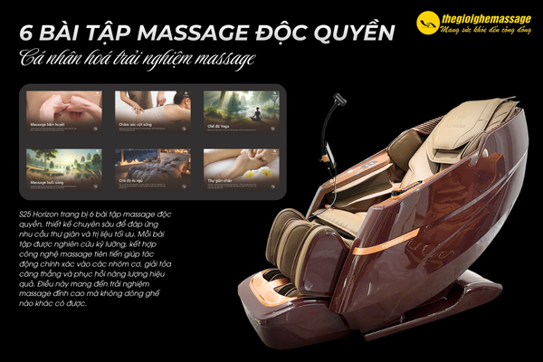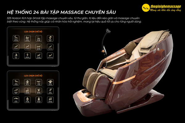 S25 Horizon mang đến 24 bài tập massage chuyên biệt, trong đó có 6 bài massage độc quyền, được thiết kế dựa trên nghiên cứu chuyên sâu về cơ thể con người.
