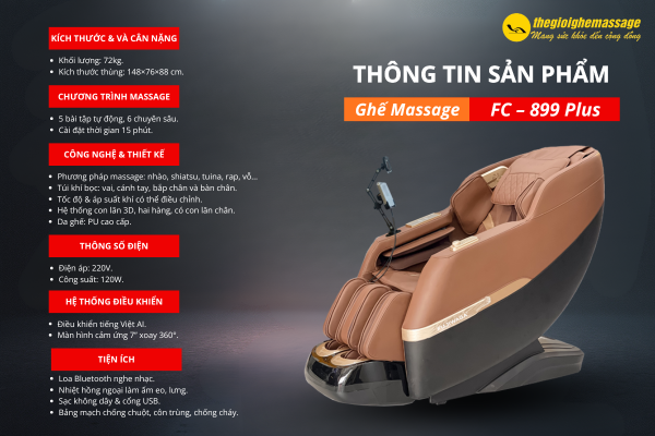 Một tính năng đặc biệt khác của chiếc ghế massage FC 899 plus là loa Bluetooth cao cấp của Fujiwaga. Nhờ vào loa này, bạn có thể tận hưởng trải nghiệm âm thanh sống động và tạo ra một không gian thư giãn hoàn hảo. Bạn có thể kết nối điện thoại di động hoặc các thiết bị phát nhạc khác với ghế massage qua kết nối Bluetooth và thưởng thức âm nhạc yêu thích của mình trong suốt quá trình massage. Âm thanh sống động từ loa cao cấp sẽ làm tăng thêm cảm giác thư giãn và thoải mái, đem đến một trải nghiệm tuyệt vời cho người sử dụng.