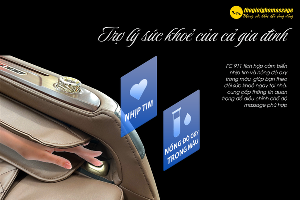 Ghế massage FC911 luxury tích hợp cảm biến nhịp tim, giúp bạn theo dõi sức khỏe ngay tại nhà. Cảm biến này cho phép đo và kiểm tra nhịp tim trong quá trình sử dụng ghế, cung cấp thông tin quan trọng để điều chỉnh chế độ massage phù hợp.