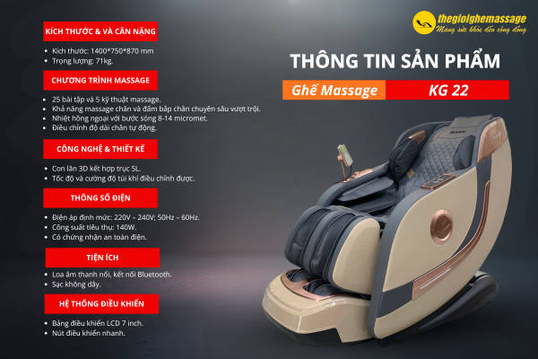 Tính năng nổi bật của ghế massage toàn thân KG22