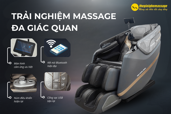 Không chỉ thư giãn cơ thể, Medsonic 3500 còn nâng tầm trải nghiệm với hệ thống giải trí đa phương tiện hiện đại: