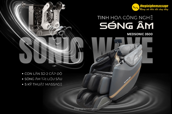 Công nghệ sóng âm là linh hồn của ghế massage Medsonic 3500, sử dụng dao động âm tần thấp để truyền năng lượng sâu vào các mô cơ, giúp: