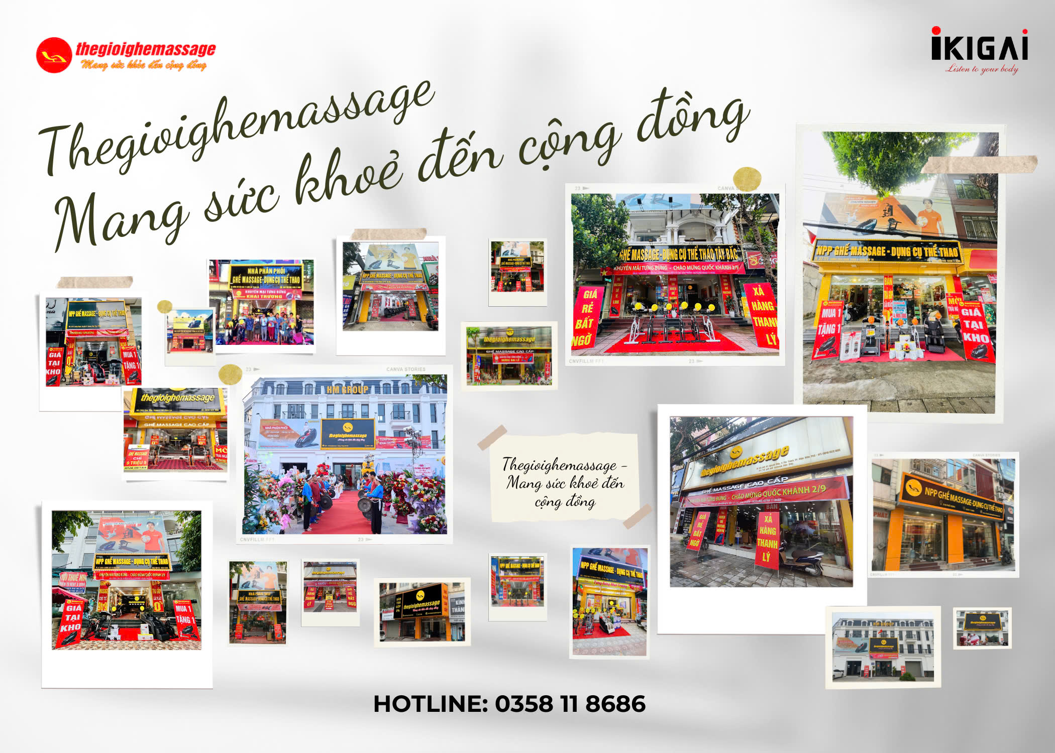 Dòng slogan viết tay mềm mại như một lời tâm tình chân thành, thể hiện cam kết lâu dài với cộng đồng. Đây là kim chỉ nam cho mọi hoạt động của Thegioighemassage – luôn đặt sức khỏe và sự hài lòng của khách hàng làm trung tâm.